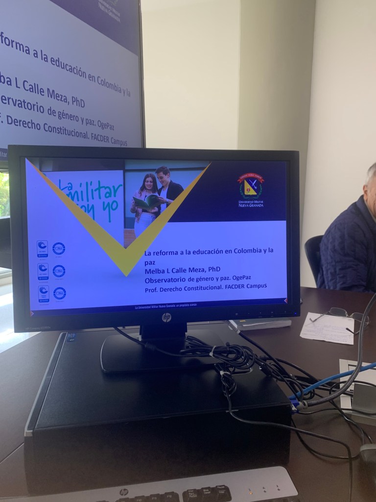 La profesora de la Facultad de Derecho Campus, Melba Luz Calle, directora del Observatorio de Género y Paz. OgePaz, hizo una exposición sobre la reforma a la educación y la paz centrada en el proyecto de ley de reforma a la Ley de Educación Superior, Ley 30 de 1992, según el texto para primer debate en la Cámara, No. 419 de 2023, con el cual se busca adaptar la legislación educativa del país a las exigencias actuales (diapositivas anexas).